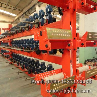 Cloth Liner Take-up Device→Loosening with Core→Roll Group(3 groups)→Front Hauling Device→Front Clamping and Stretching Device→Main Vulcanizing Press→Middle Clamping Device→Roll Group(3 groups)→Behind Clamping and Stretching→Behind Hauling Device→Repairing Press→Double Roll Wind Up Device.