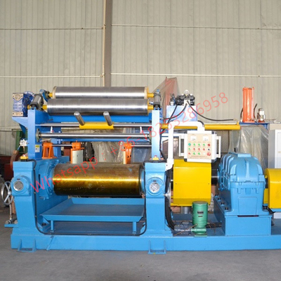 to adjust the temperature of the rollers. The two rollers rotate relative to each other at different speeds, pulling the rubber